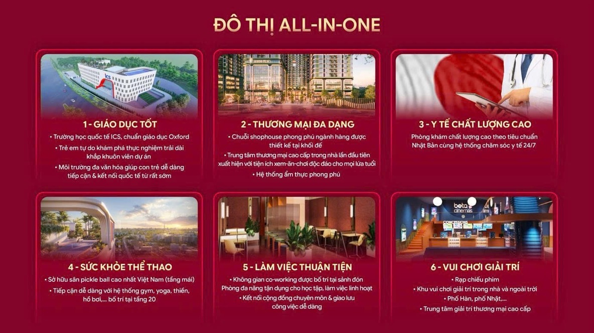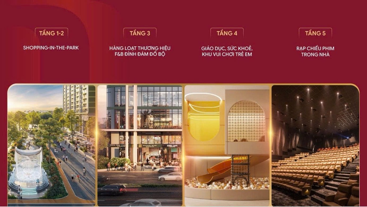 - Trung tâm thương mại cao cấp trong nhà lần đầu tiên xuất hiện, tích hợp trọn vẹn trải nghiệm mua sắm – ẩm thực – giải trí, đáp ứng mọi nhu cầu cho cư dân ở mọi độ tuổi.
