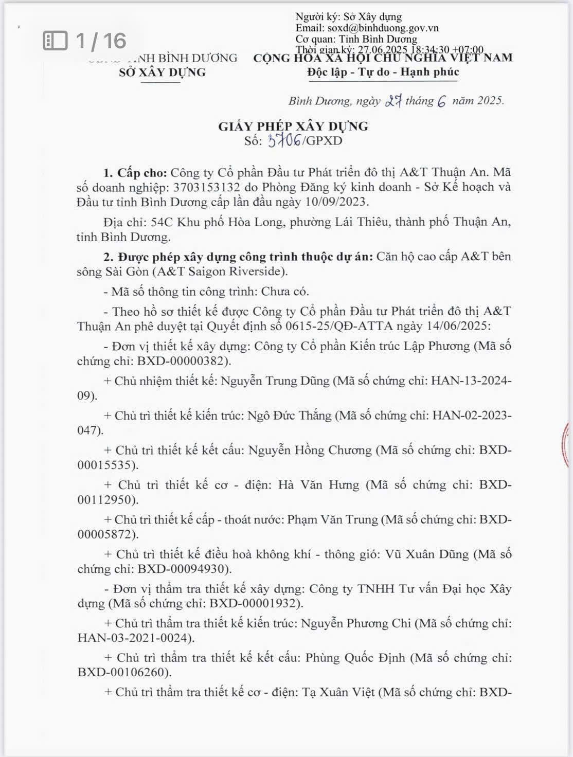 - Giấy phép xây dựng dự án A&T Saigon Riverside