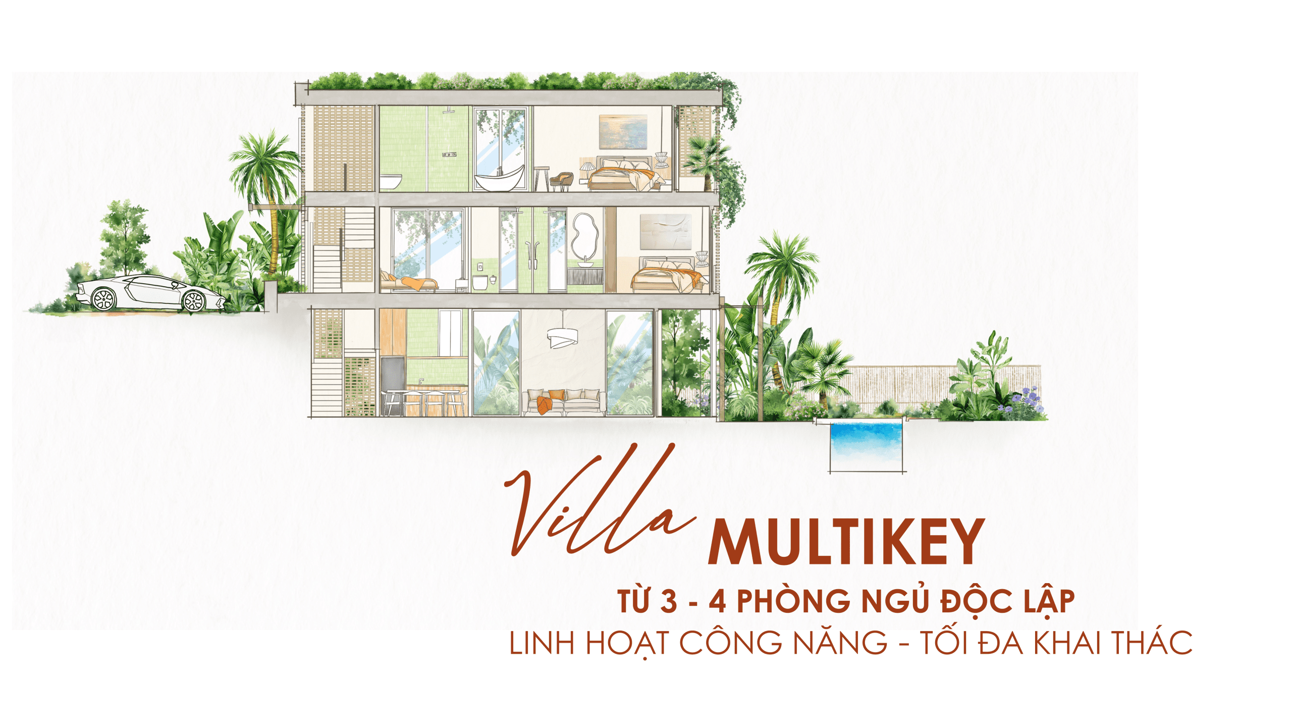 Bên cạnh đó, nhiều layout áp dụng mô hình multi-key 3–4 chìa – các phòng ngủ có lối vào riêng, tạo sự linh hoạt trong cho thuê theo phòng hoặc cả căn.